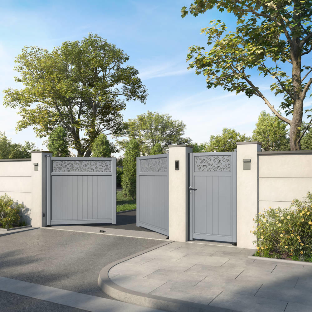 Chaque portail peut être assorti d’un portillon et d’une clôture au design coordonné, pour une harmonie parfaite.