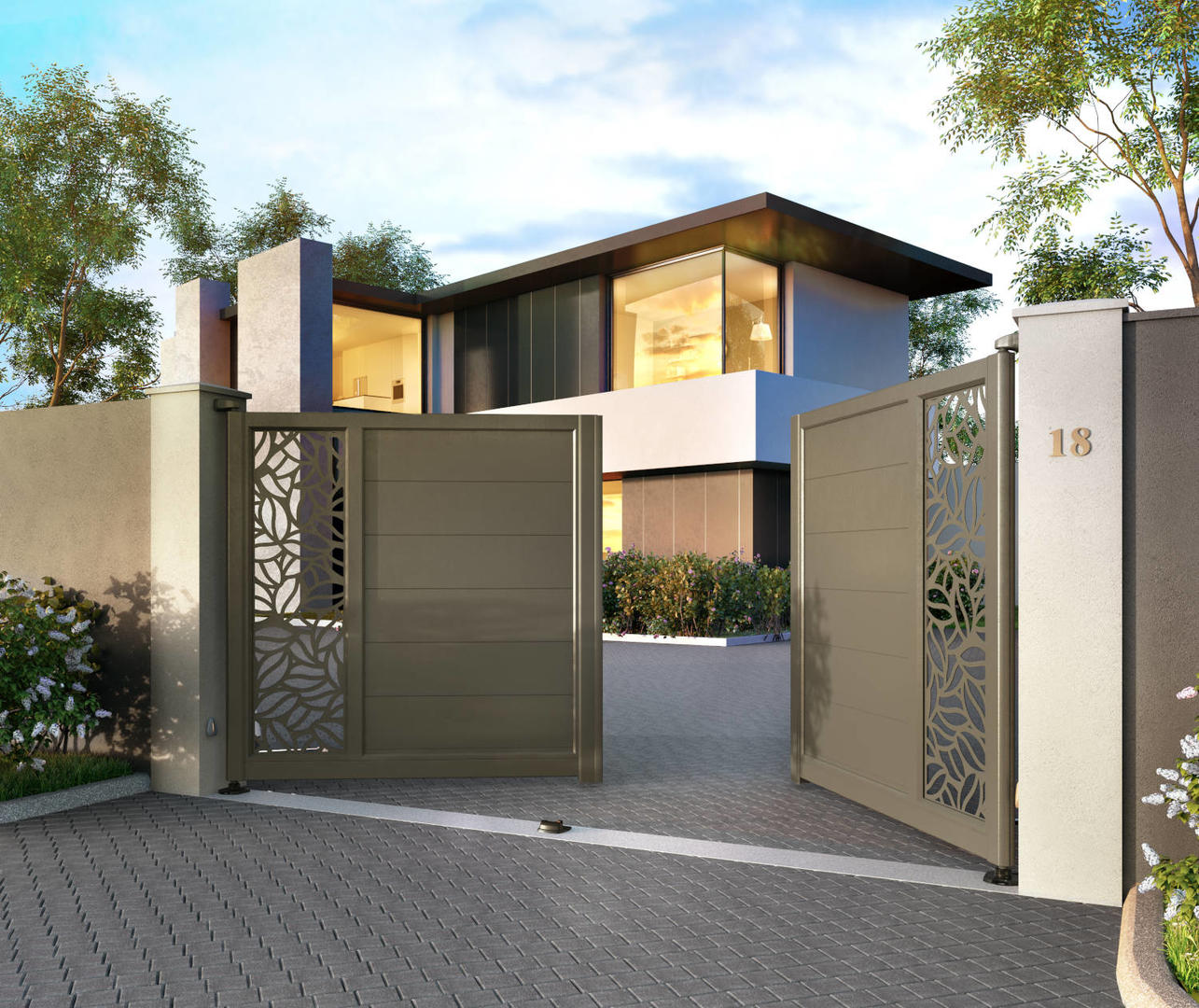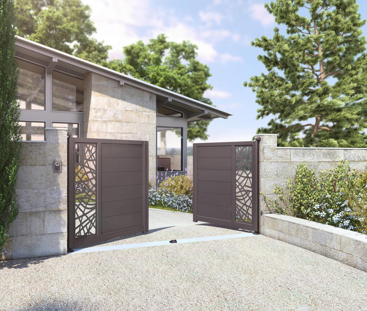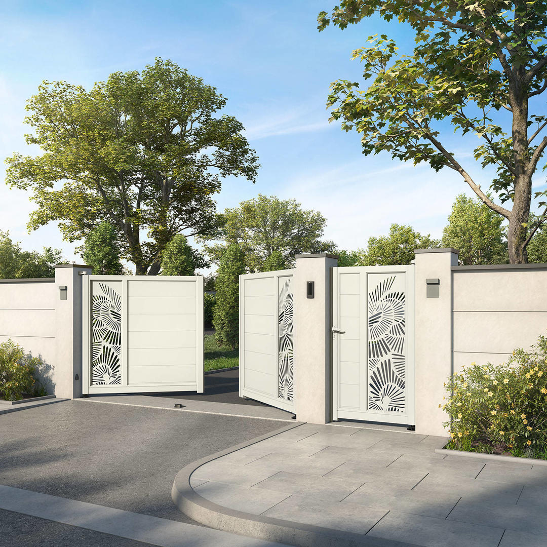 Lazer une collection de portails en motif laser, design et originale qui intègre une sélection de 21 motifs uniques et inédits réalisés par découpe laser. Ces motifs sont configurables en formats vertical et horizontal. Lames de remplissages, position des décors, la collection propose de nombreuses variantes esthétiques à personnaliser. Tous les portails en découpe laser se déclinent en portails battant et coulissant, versions manuelle ou motorisée avec portillon coordonné.