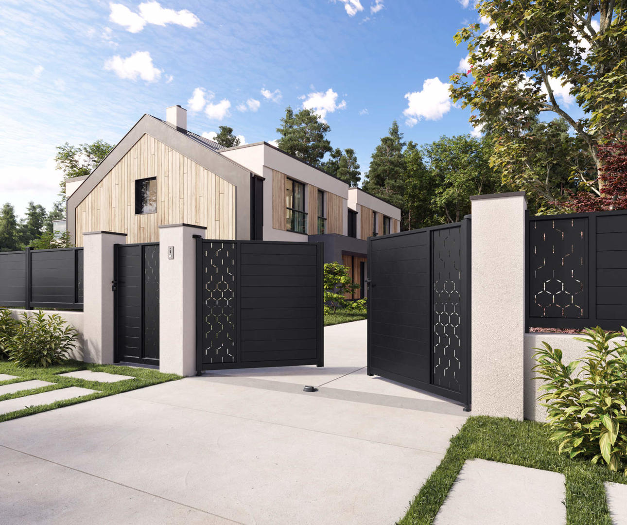 Enfin, pour une harmonie parfaite autour de votre maison, tous ces modèles sont disponibles avec des portillons et des clôtures assortis, vous permettant de composer un ensemble coordonné et esthétique.